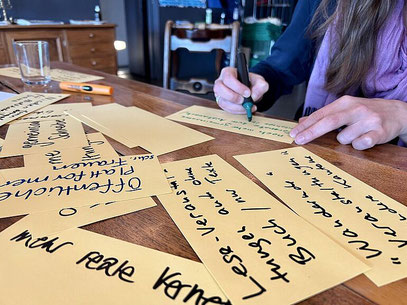 Was müsste als Erstes gemacht werden, um dieser Vision einen Schritt näher zu kommen? lautete die dritte Frage, der sich die Frauen stellten. Auch hier sind die Antworten vielfältig und sehr konkret: durch Öffentlichkeitsarbeit sichtbarer werden, neue aktive Mitfrauen finden, durch Brainstorming zu coolen Projekten kommen, die Bedürfnisse der Mitfrauen abfragen, das Selbstbild festigen, den Vereinszweck klar definieren.